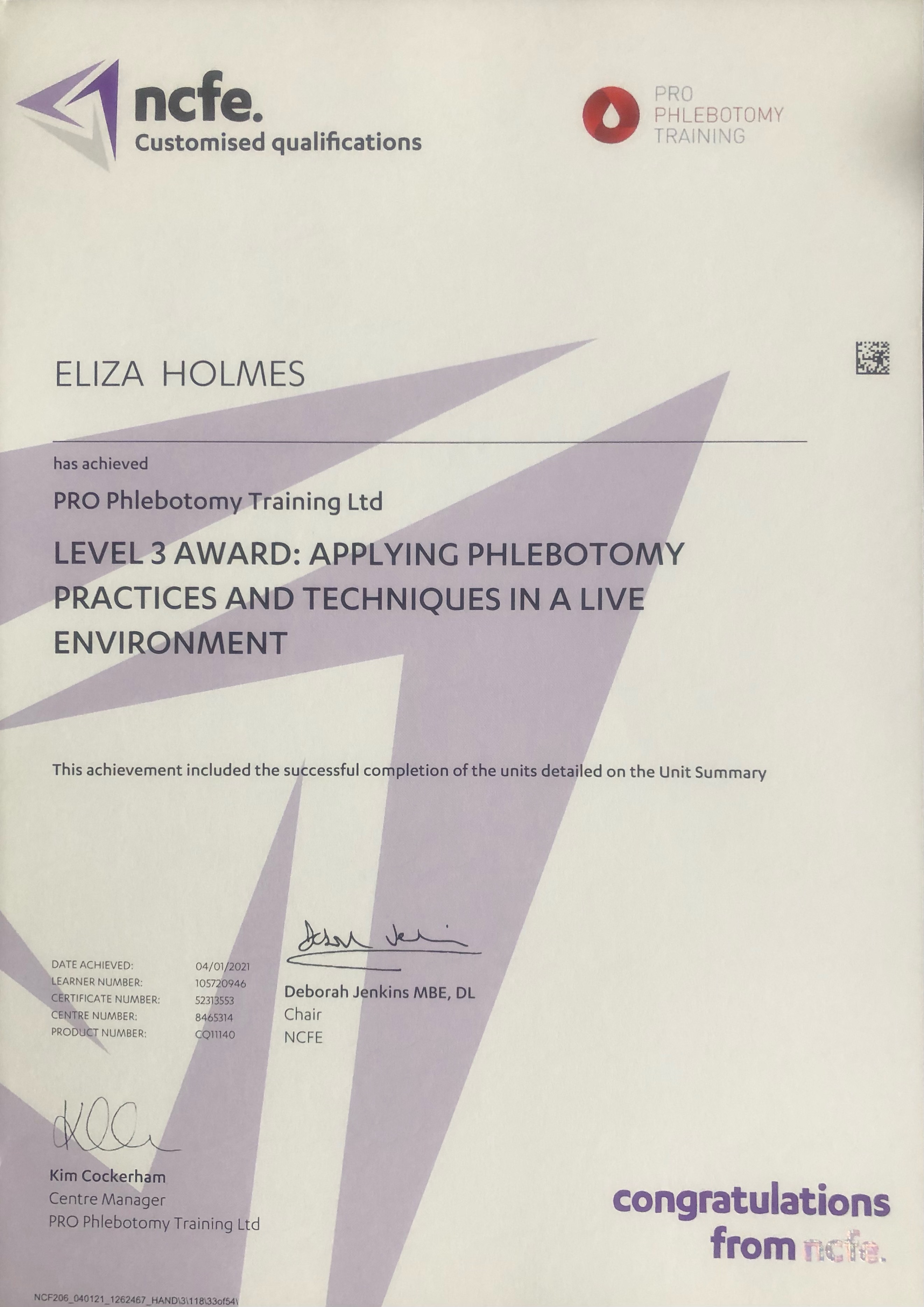 | Megan Clifford | Merseyside | 3 | Certificate Competance | Certificate Attendance | More... |