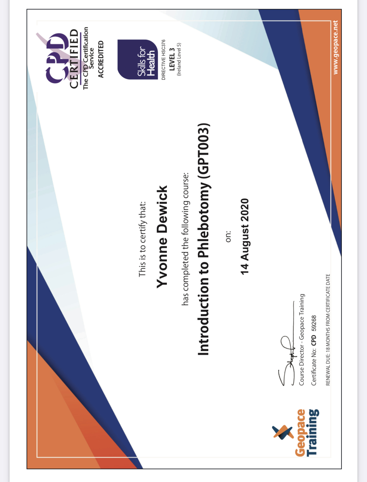 | Yvonne Dewick | Cork | 3 | Certificate Competance | Certificate Attendance | More... |